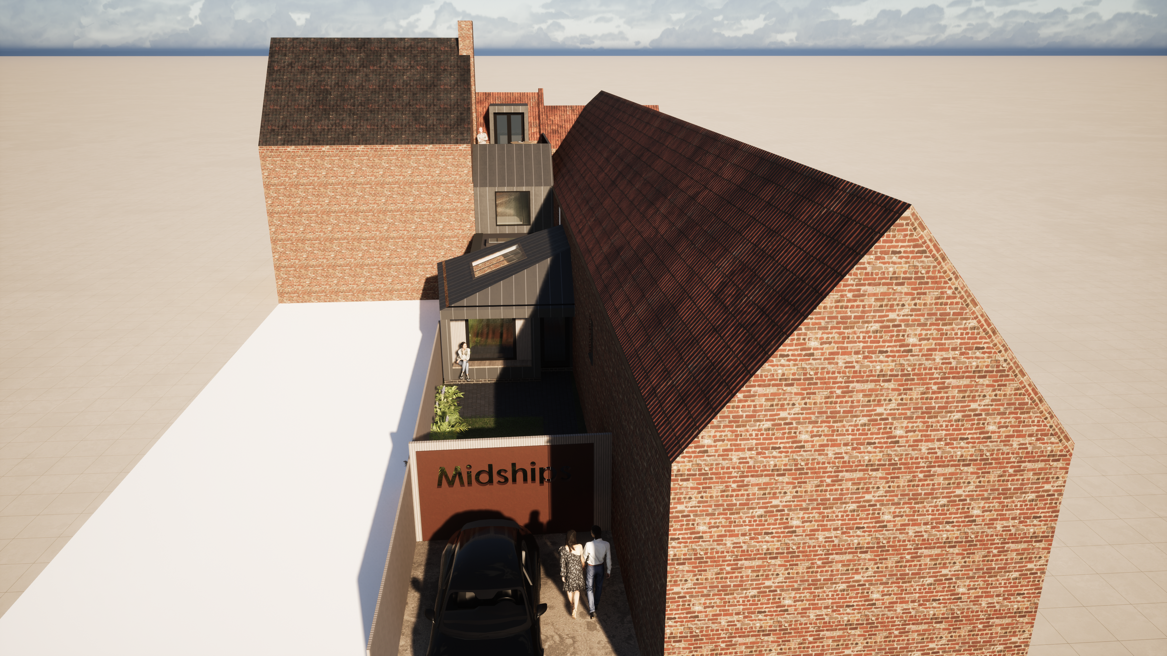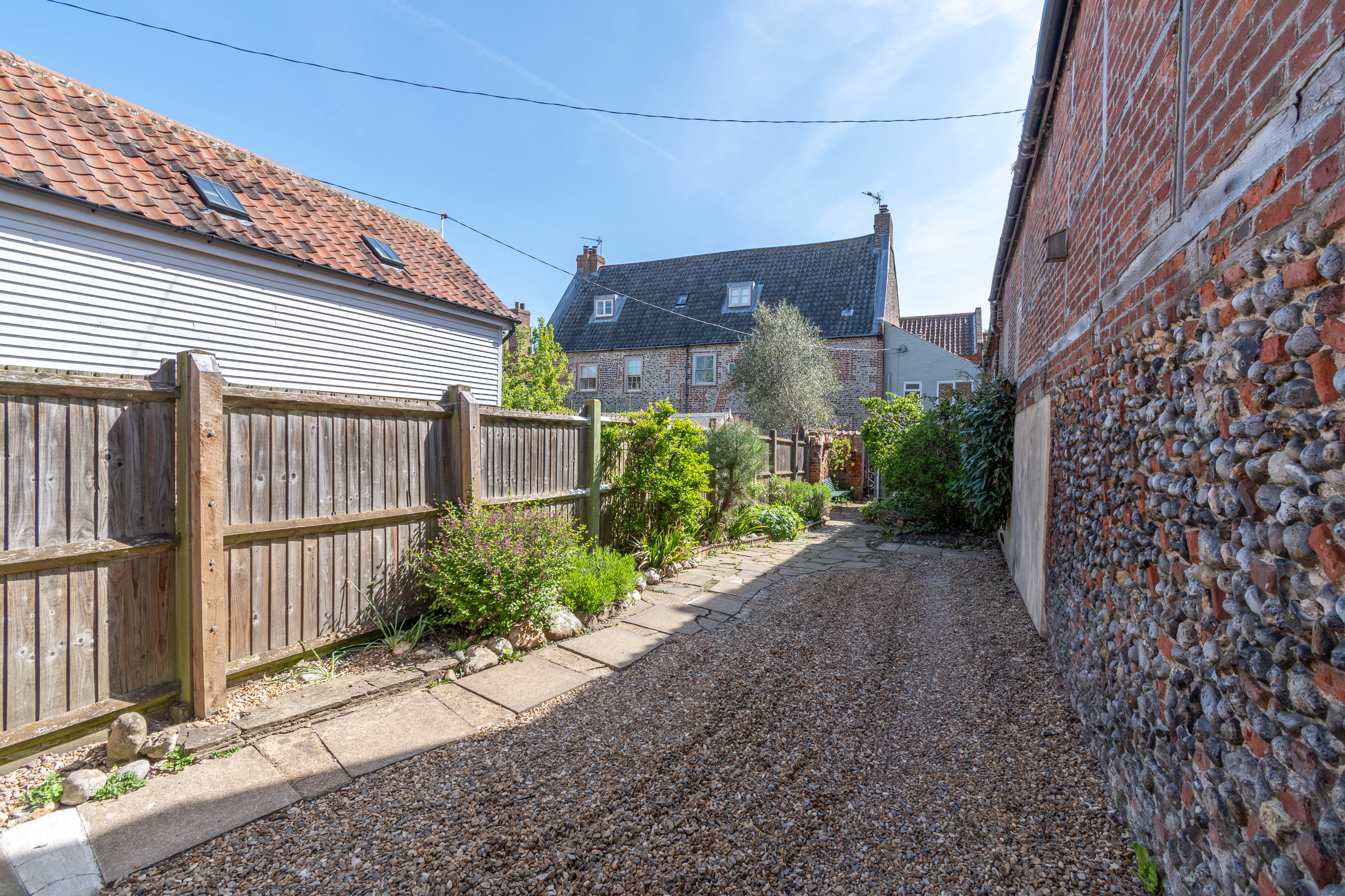Midships is a 3 storey cottage with accommodation briefly comprising a spacious entrance hall with scope for utility use, galleried first floor landing, kitchen/diner, bathroom and double bedroom with a second floor sitting room and attic. Outside, there is a west facing garden some 75' long, accessed off Newgate Lane, which also provides parking. Planning Permission has also been obtained from North Norfolk District Council (under reference PF/25/0182) for a two-storey extension creating spacious ground floor kitchen/dining/living space,utility and WC, with 2 bedrooms and 2 bathrooms to the first floor, and a second floor sitting room with patio doors opening onto a west facing roof terrace.