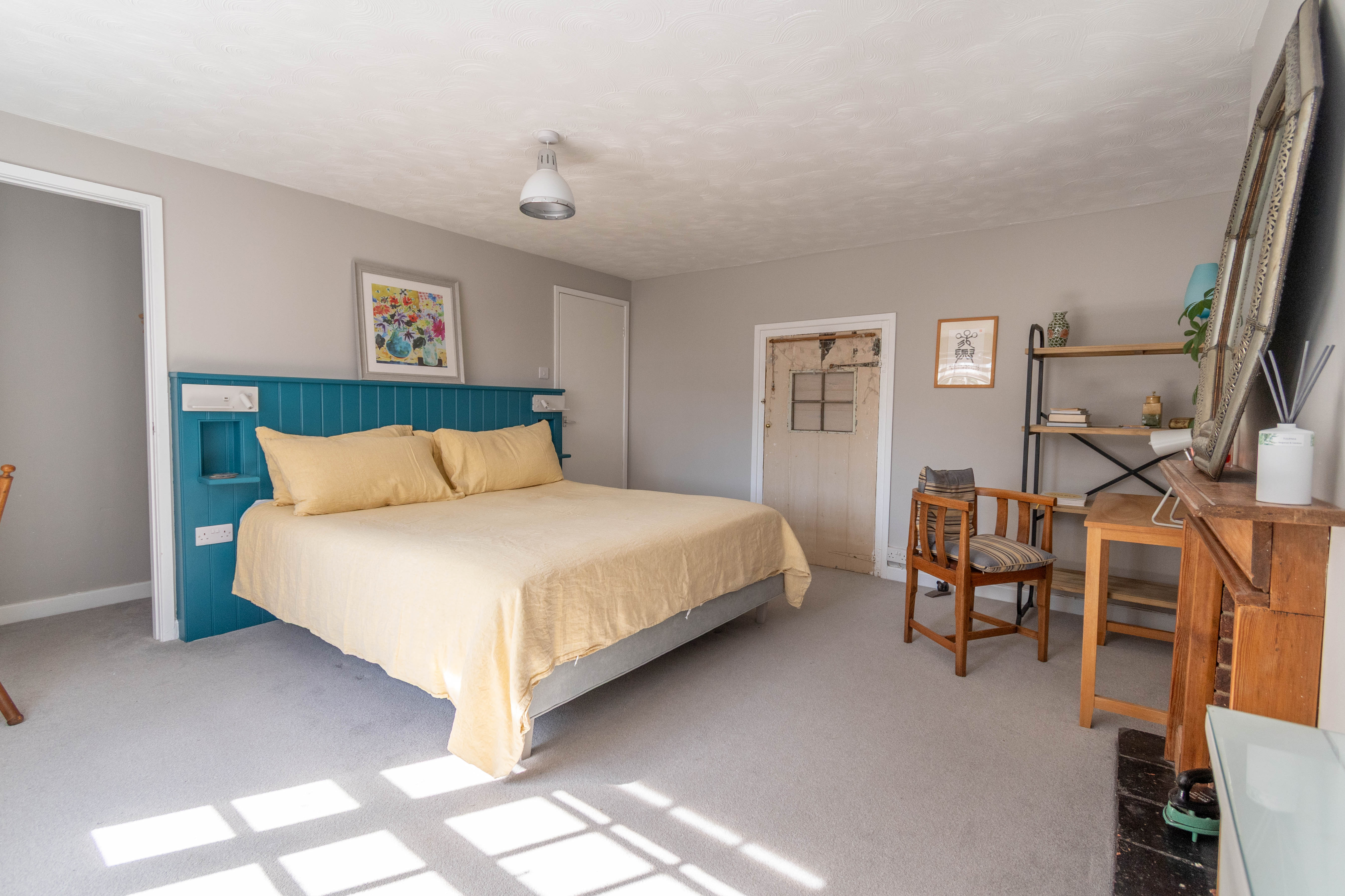 Pine floorboards, exposed wall beams, fitted shelves, electric radiator and shelved airing cupboard housing the hot water cylinder.