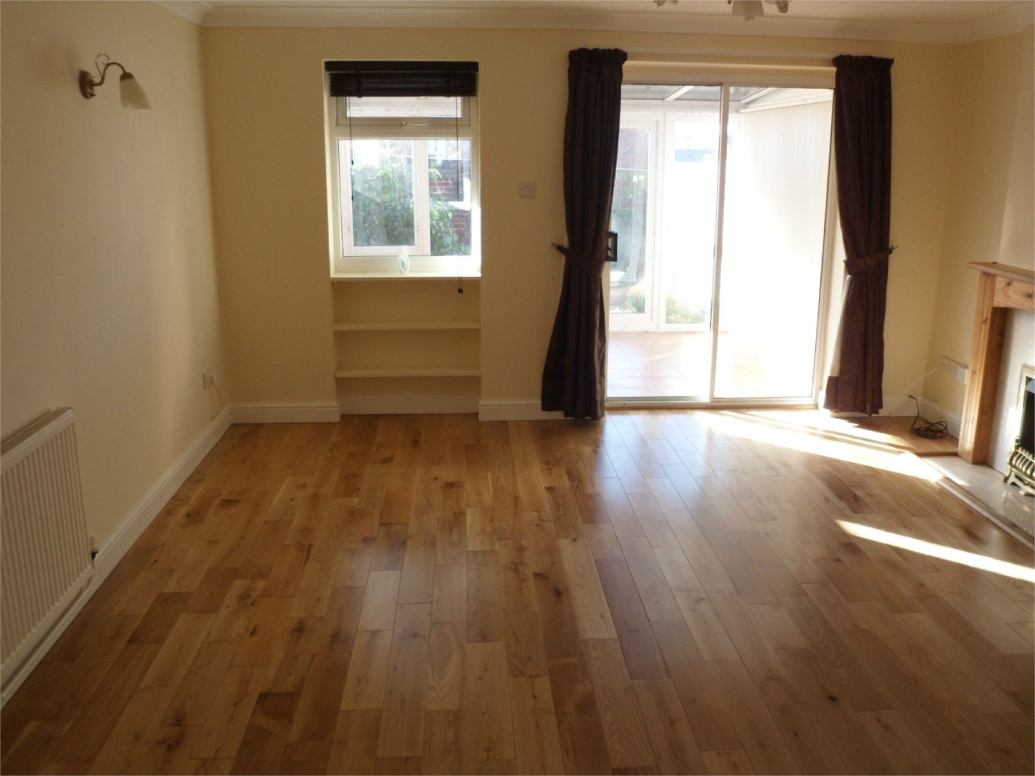 SITTING ROOMWood effect laminate flooring, windows to rear and patio doors leading to conservatory, TV and telephone points, radiator, feature fireplace with coal effect gas fire, spiral staircase leading to first floor.