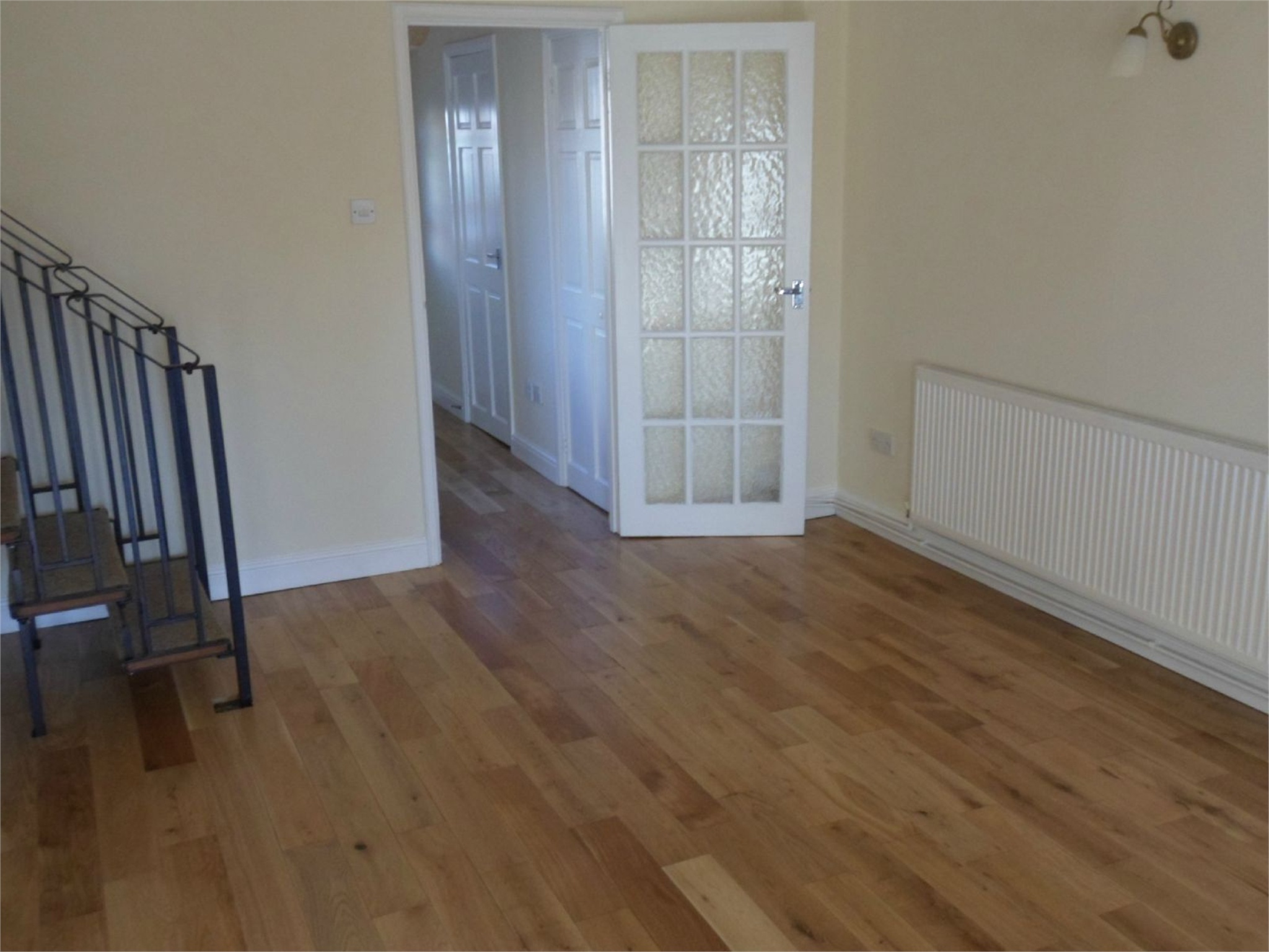 ENTRANCE HALLWood effect laminate flooring, storage cupboard, radiator.