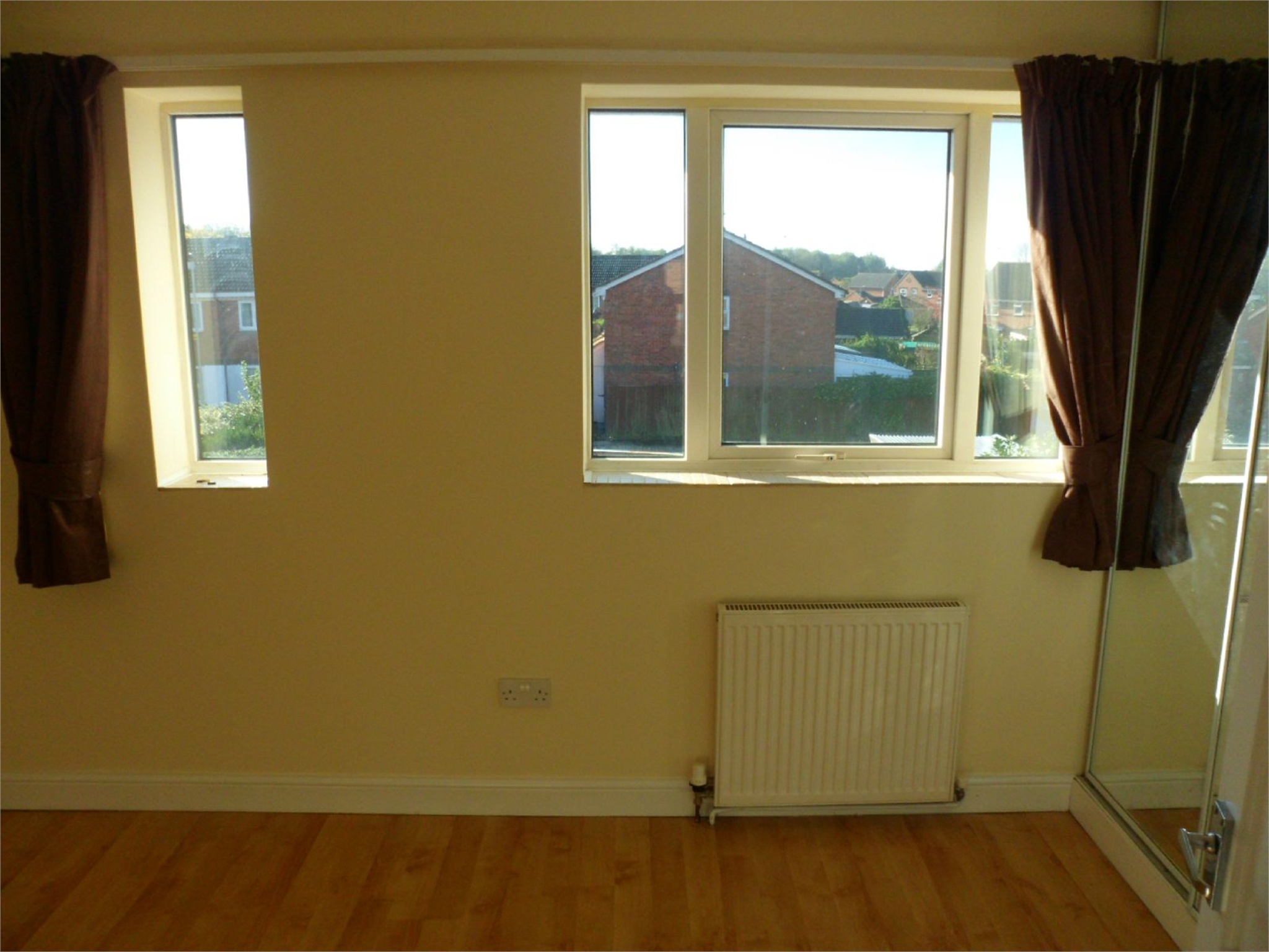 BEDROOM 1Wood effect laminate flooring, window to rear, radiator, double fitted mirrored wardrobes.