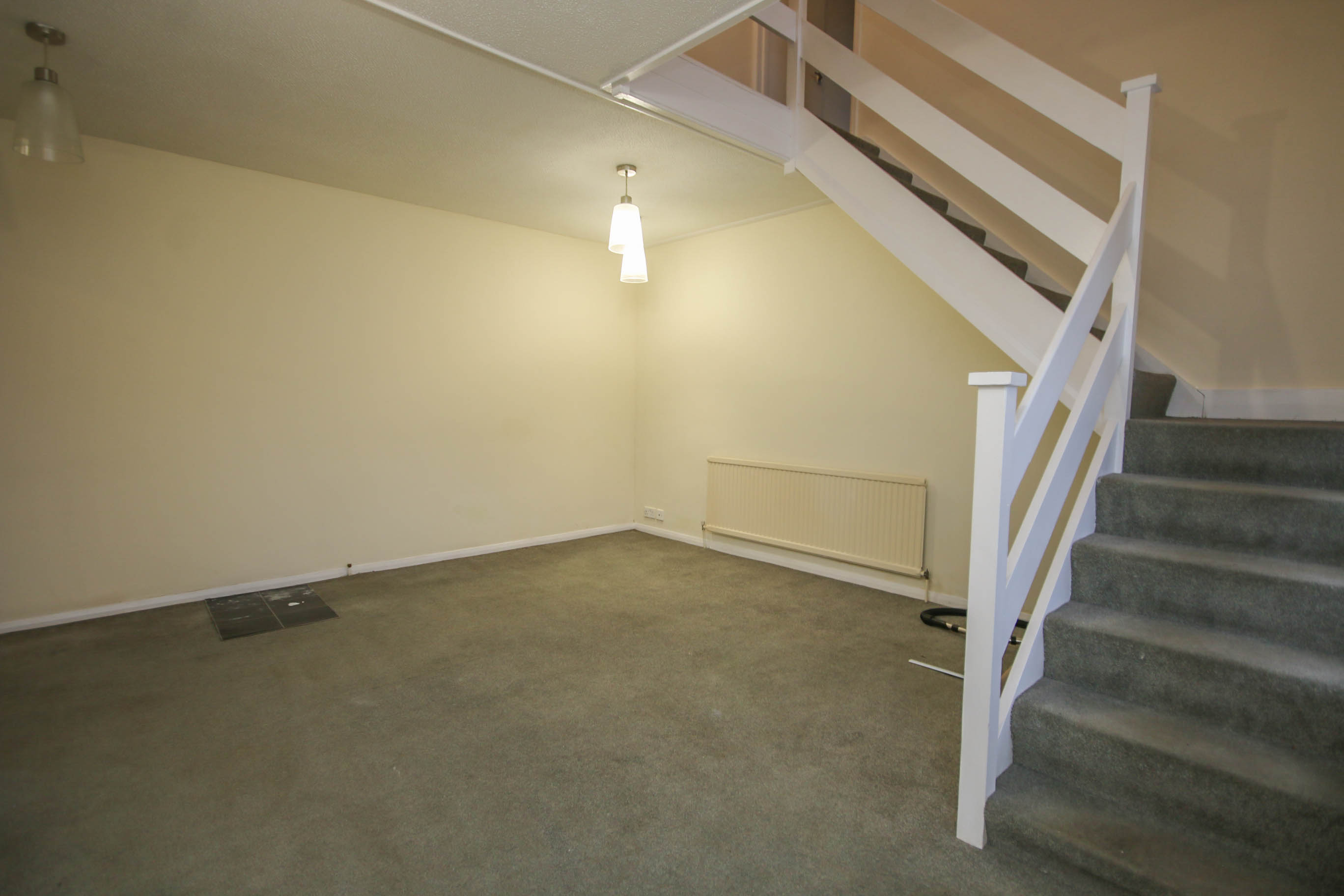 DINING ROOMFitted carpet, radiator, bay window to front, stairs to first floor.