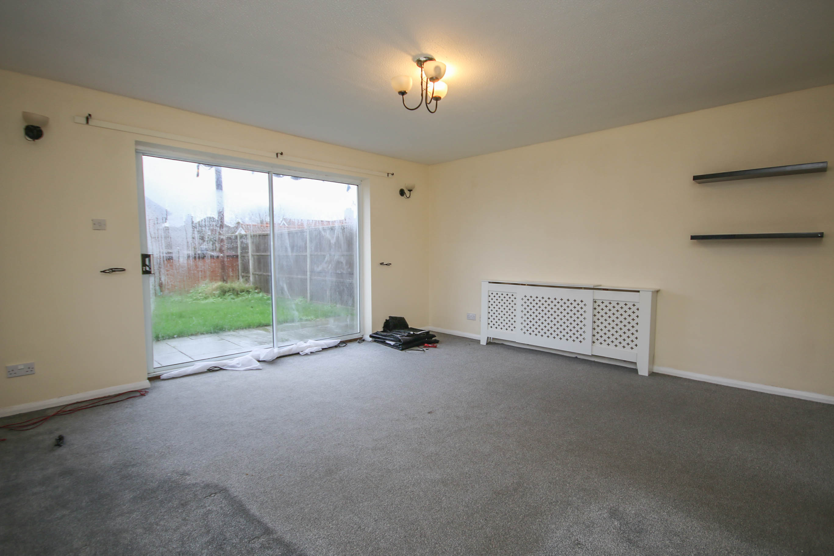 SITTING ROOMFitted carpet, radiator, patio doors leading to garden, window to front.