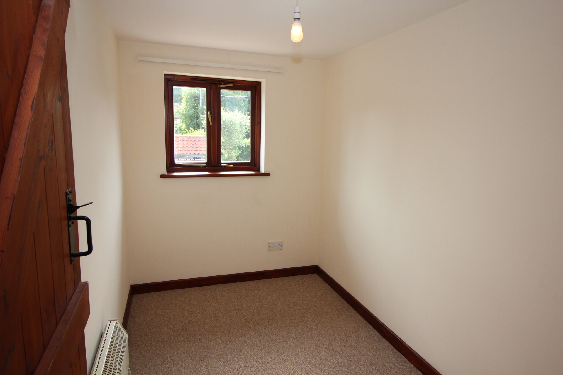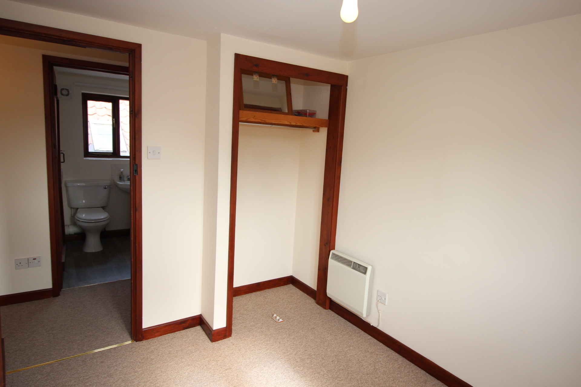 Fitted wardrobe cupboard, electric radiator, fitted carpet and a window to the front.
